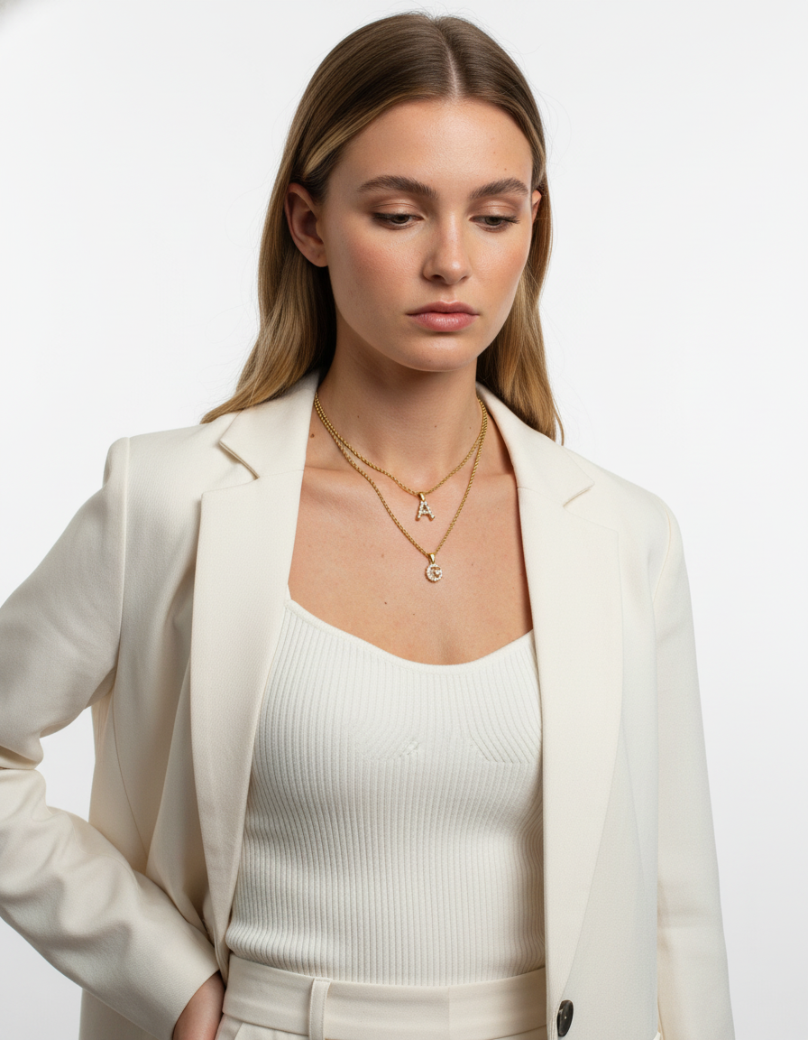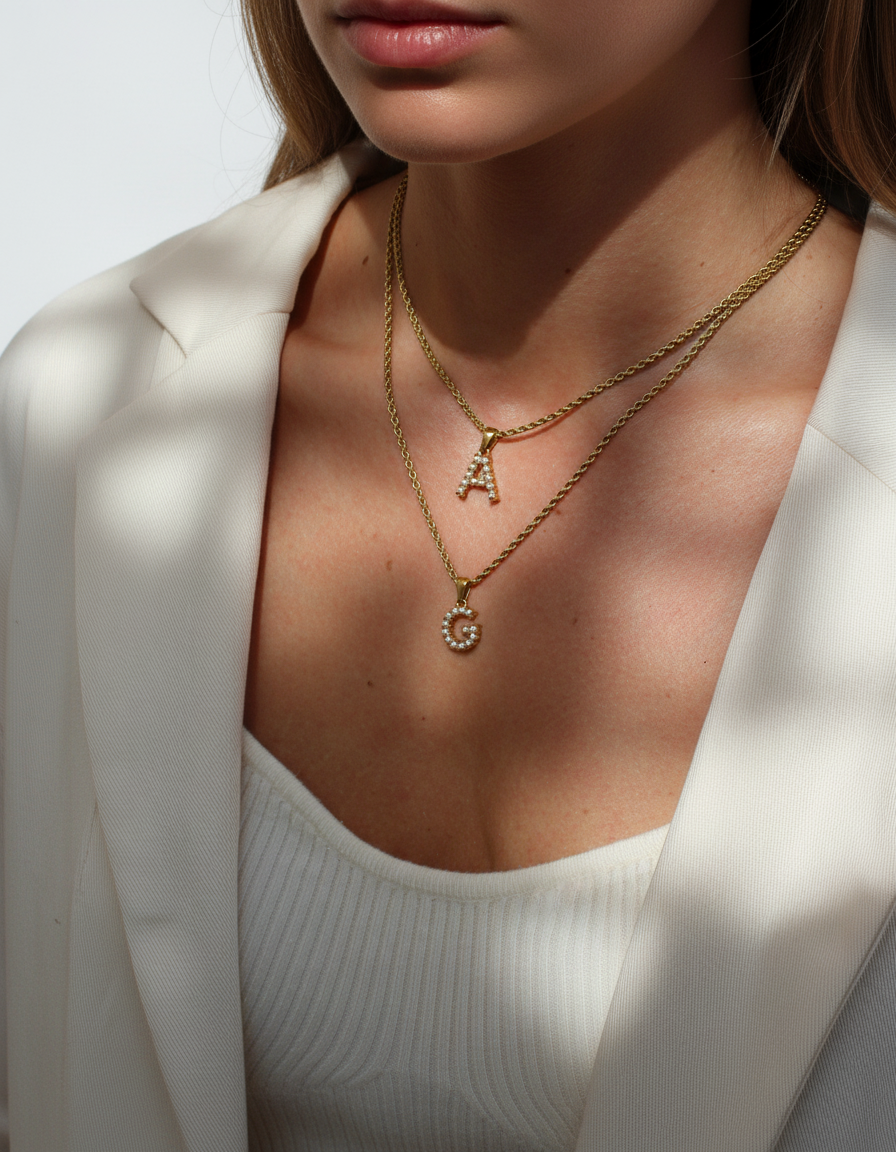 Entdecken Sie die perfekte Kombination aus Eleganz und Individualität mit unserer goldenen Buchstaben-Halskette, verziert mit zarten Perlen. Dieses einzigartige Schmuckstück vereint personalisierten Stil mit zeitloser Schönheit und ist ein Highlight für jede Schmuckkollektion.
