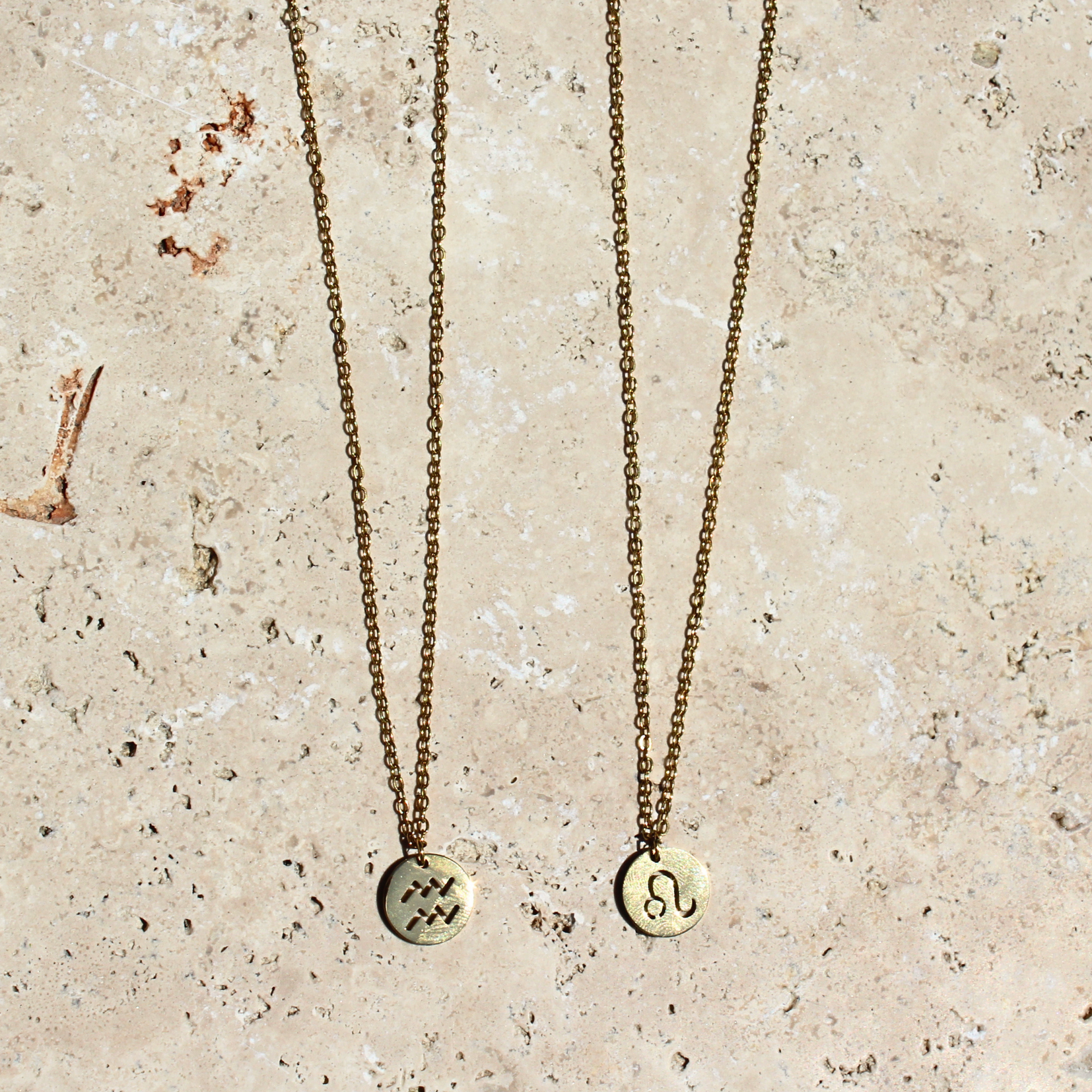 Die Golden Zodiac Halsketten sind mehr als nur Schmuck – sie sind persönliche Begleiter, die deine Einzigartigkeit und Sternzeichenenergie stilvoll in Szene setzen. Jede Kette trägt einen runden, goldenen Anhänger mit einem fein eingravierten astrologischen Symbol. Die matte, leicht strukturierte Oberfläche verleiht den Anhängern einen organisch-edlen Charakter, der perfekt mit der filigranen Gliederkette harmoniert.